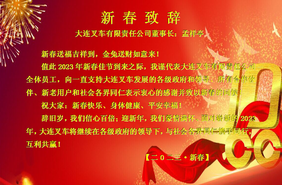 大連叉車有限責(zé)任公司董事長(zhǎng)孟祥亭新春致辭